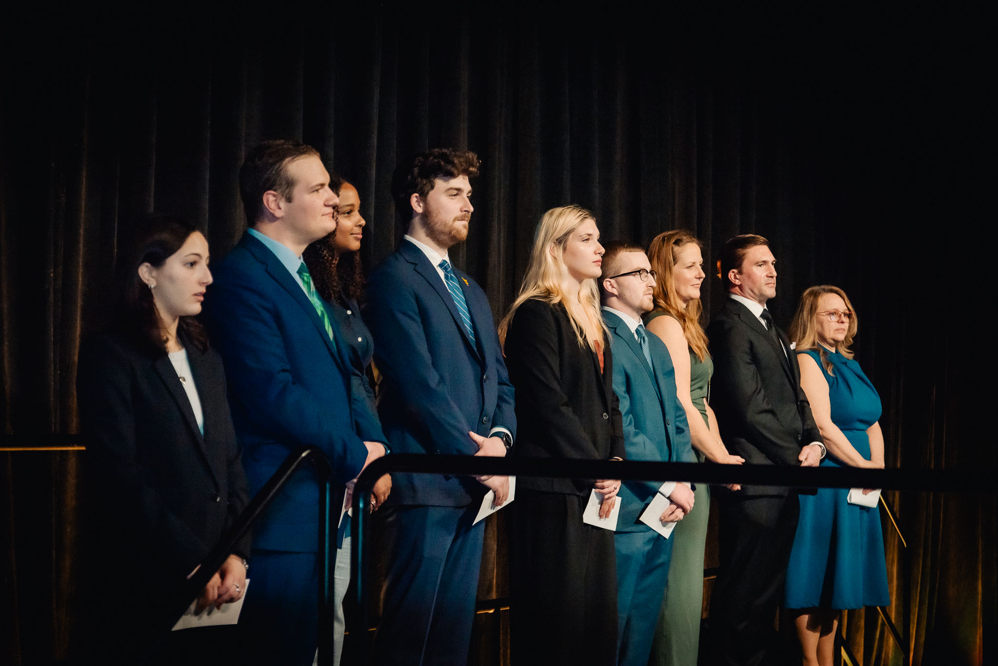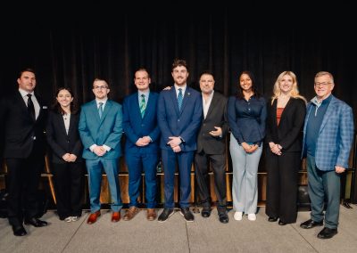 Far left: Sarah Nunamaker – Executive Director. Students from Left to Right: Mariana Agadis, Brian Blake, Sydney Dews, Logan Kalman, Morgan McCarthy, Luke Showers.